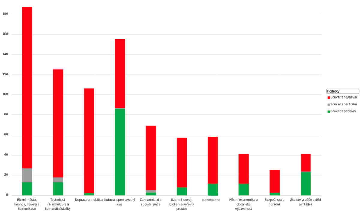 Úvodní tabulka shrnuje výsledky tohoto třídění a nabízí rychlý přehled celkového vyznění jednotlivých témat. Následující text pak tato data rozvíjí a interpretuje, nikoli statisticky, ale z pohledu opakujících se zkušeností a pocitů obyvatel.