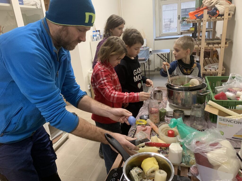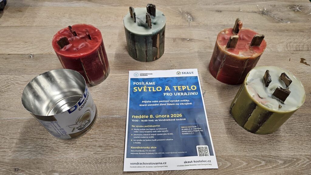 V neděli 8.února se prostory Vondráčkovy továrny proměnily v dílnu pro dobrou věc. Skautské středisko Datel zde uspořádalo výrobu zákopových svíček, které pomohou lidem na Ukrajině zvládnout mrazivé období.
